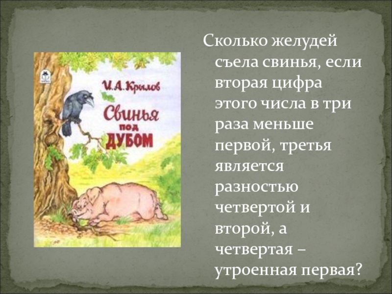 Сколько желудей съела свинья, если вторая цифра этого числа в три