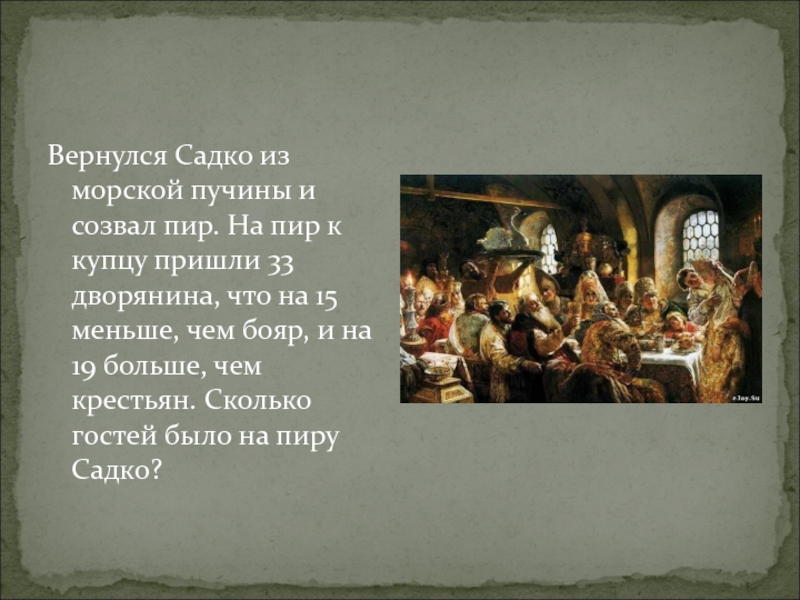 Вернулся Садко из морской пучины и созвал пир. На пир к