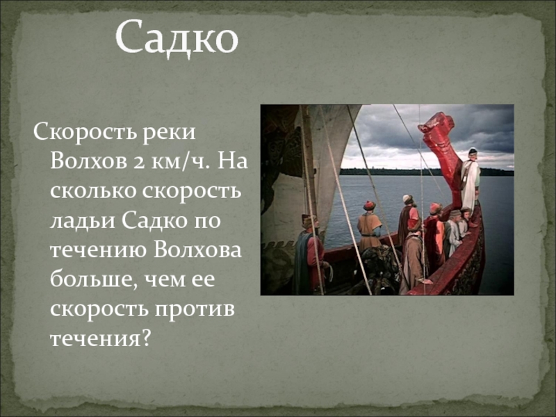 Скорость реки Волхов 2 км/ч. На сколько скорость ладьи Садко по