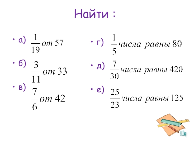 Презентация, доклад на тему Часть от числа и число по его части 6 класс