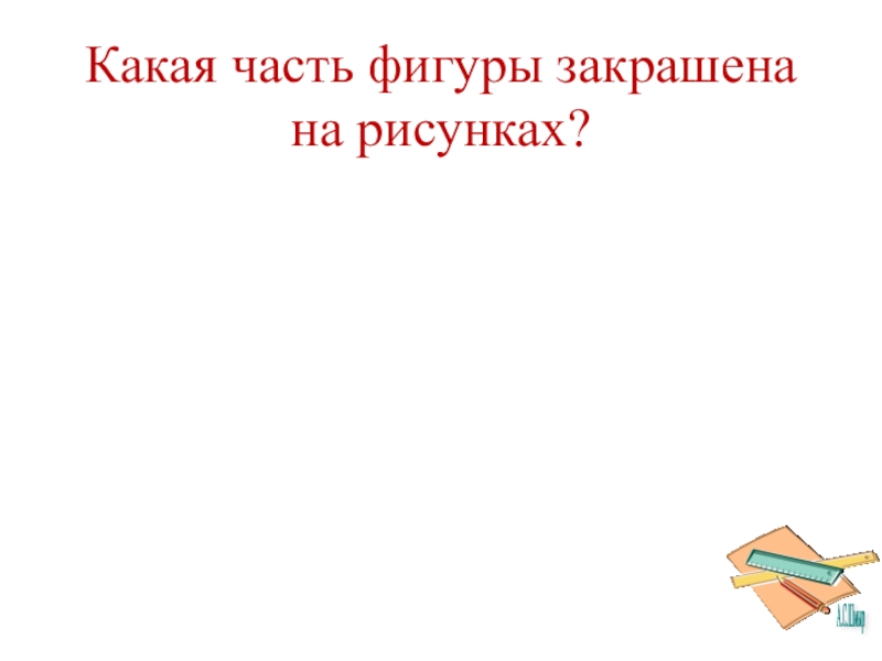 Слайд 3Какая часть фигуры закрашена на рисунках?