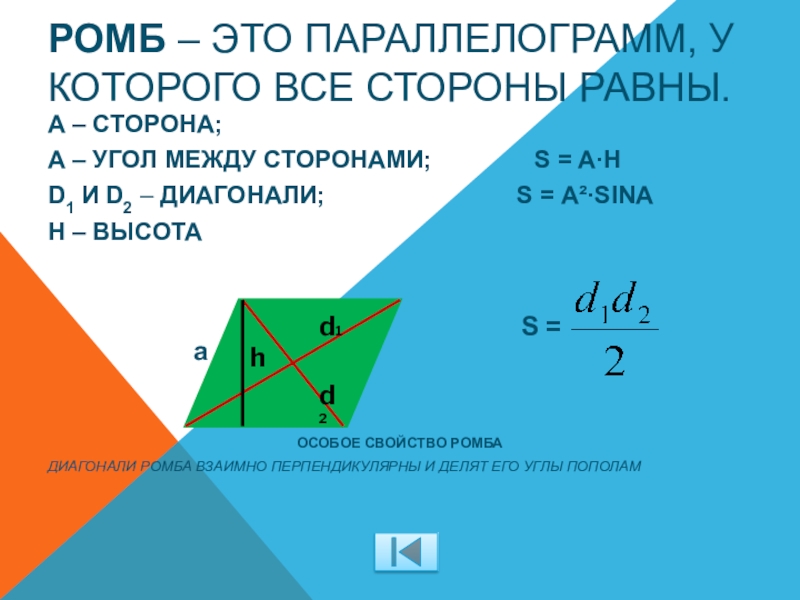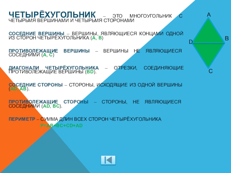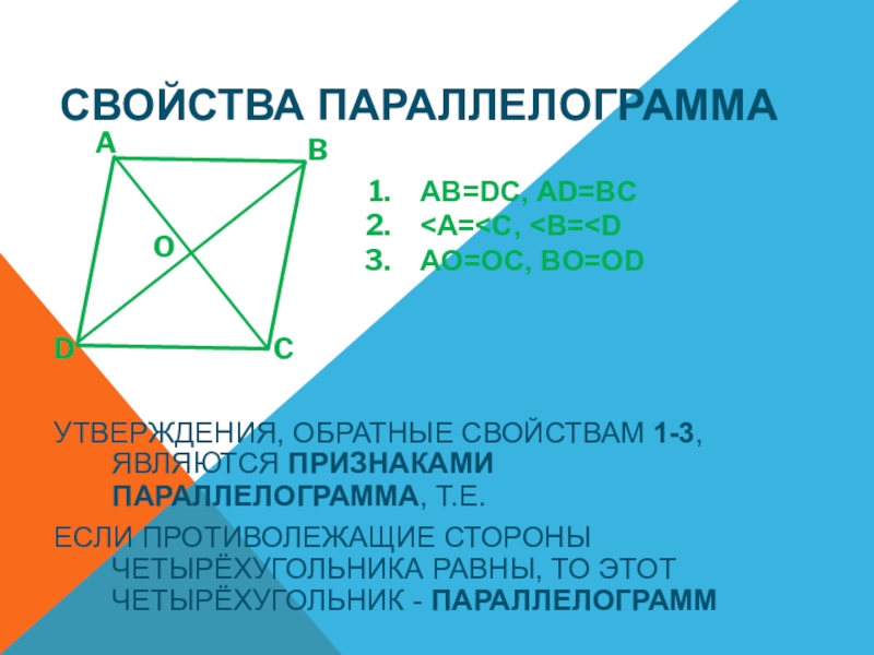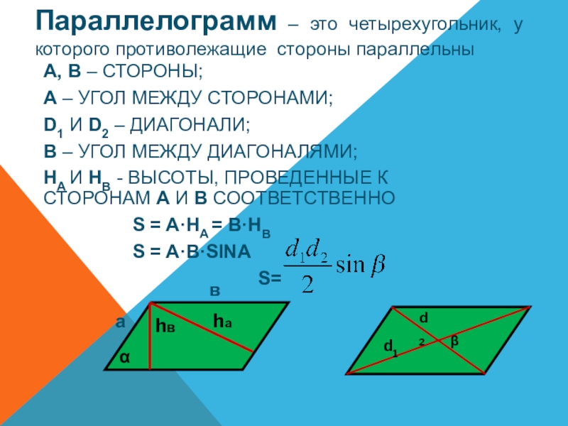 Параллелограмм – это четырехугольник, у которого противолежащие стороны параллельны