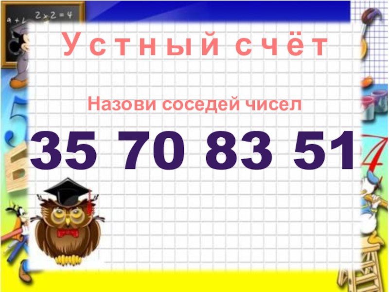 Слайд 6 У с т н ы й с ч ё т Назови соседей