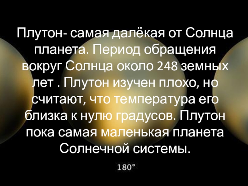 Слайд 13Плутон- самая далёкая от Солнца планета. Период обращения вокруг Солнца около
