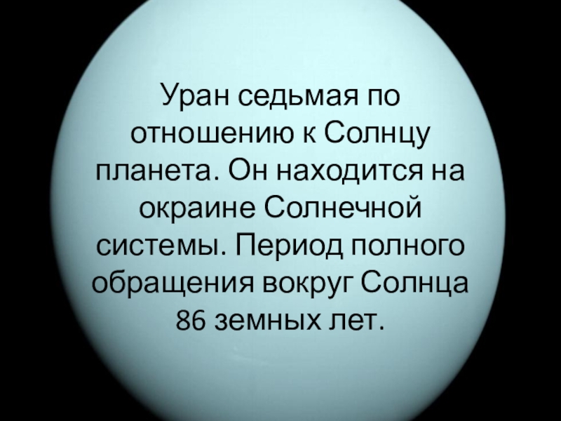 Уран седьмая по отношению к Солнцу планета. Он находится на окраине Солнечной системы. Период полного обращения вокруг