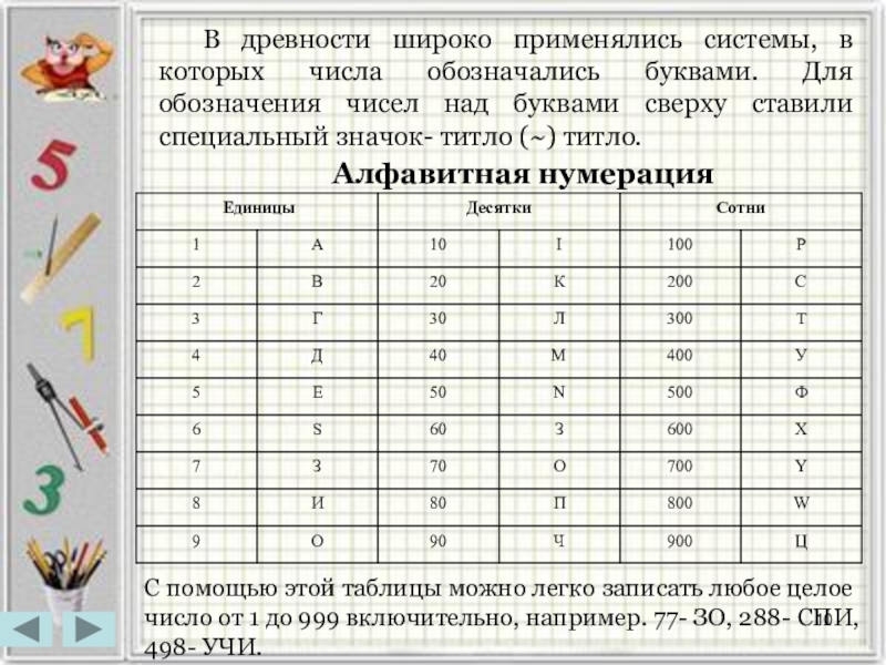 С помощью этой таблицы можно легко записать любое целое число от 1 до 999 включительно, например. 77- ЗО, 288- СПИ, 498- УЧИ.