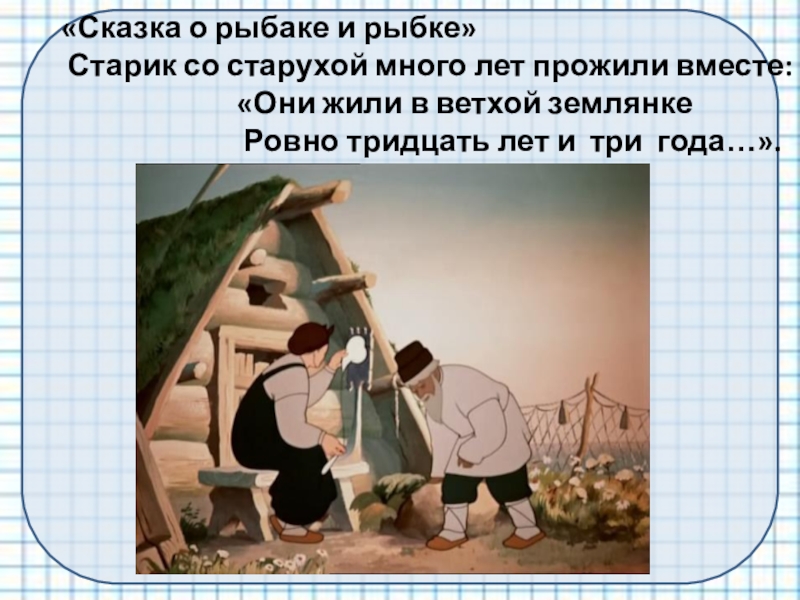 «Сказка о рыбаке и рыбке» Старик со старухой много лет прожили вместе:
