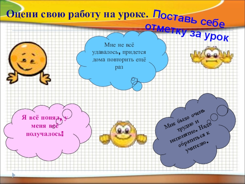 Оцени свою работу на уроке.