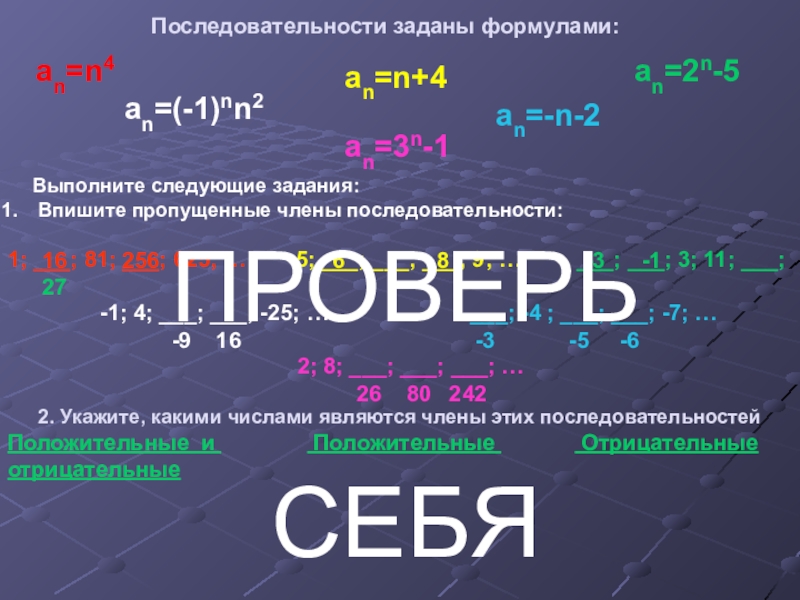 -1; 4; ___; ___; -25; … ___; -4 ; ___; ___; -7; …