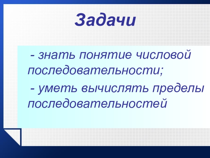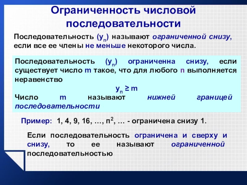 Пример: 1, 4, 9, 16, …, п2, … - ограничена снизу 1.