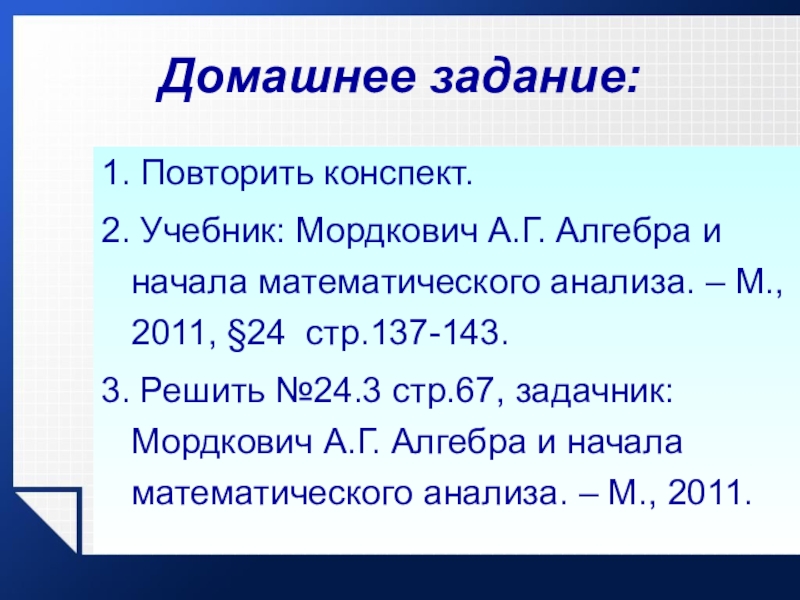 С.140 Учебник: Мордкович А.Г. Алгебра и начала математического анализа. – М., 2011
