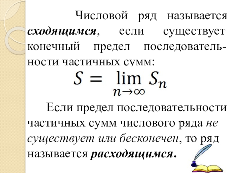 Если предел последовательности частичных сумм числового ряда не существует или бесконечен, то ряд называется расходящимся.
