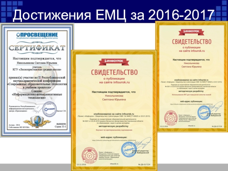 Слайд 25Достижения ЕМЦ за 2016-2017 учебный год