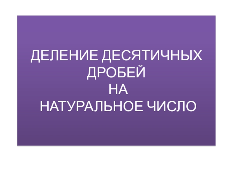 Слайд 1ДЕЛЕНИЕ ДЕСЯТИЧНЫХ ДРОБЕЙ НА НАТУРАЛЬНОЕ ЧИСЛО