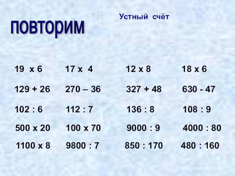 Устный счёт