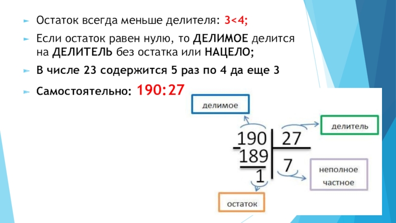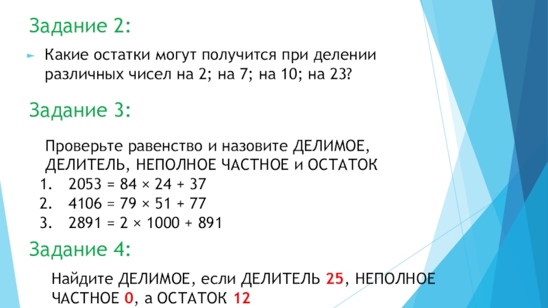 Проверьте равенство и назовите ДЕЛИМОЕ, ДЕЛИТЕЛЬ, НЕПОЛНОЕ ЧАСТНОЕ и ОСТАТОК