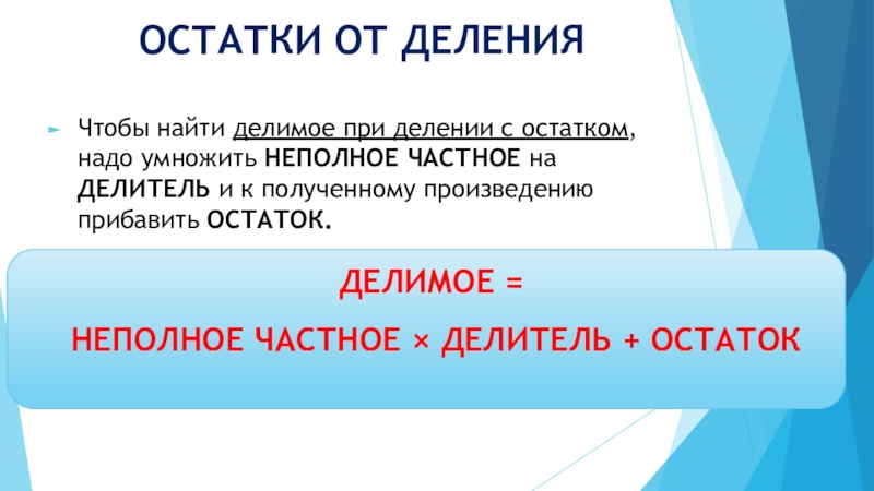 НЕПОЛНОЕ ЧАСТНОЕ × ДЕЛИТЕЛЬ + ОСТАТОК