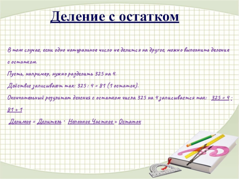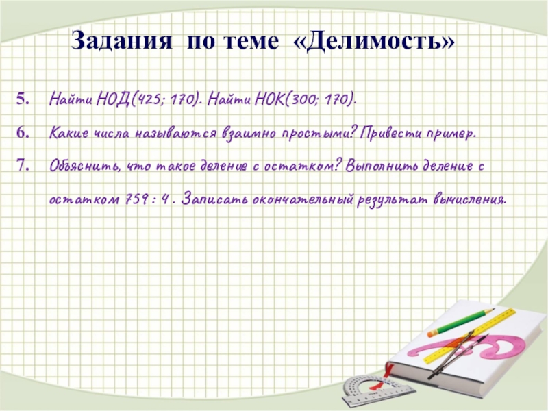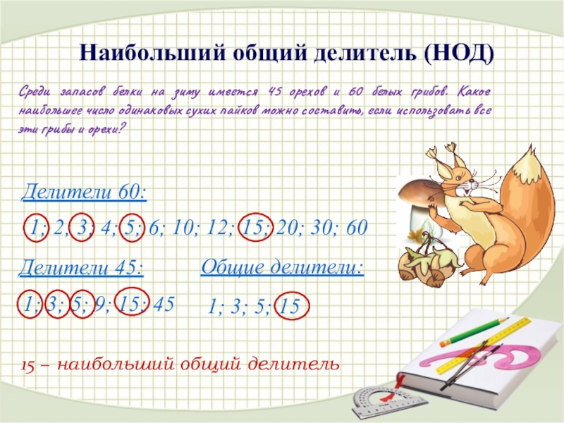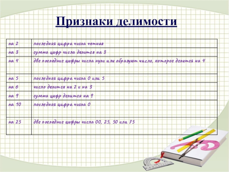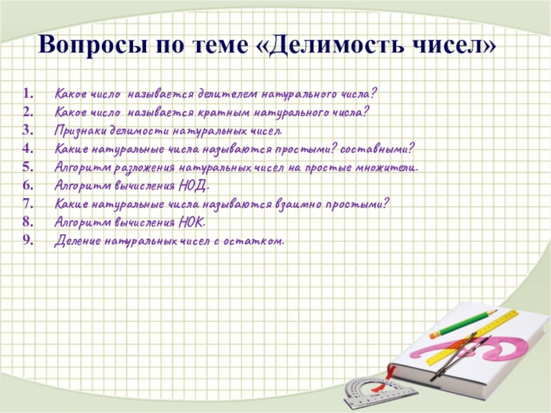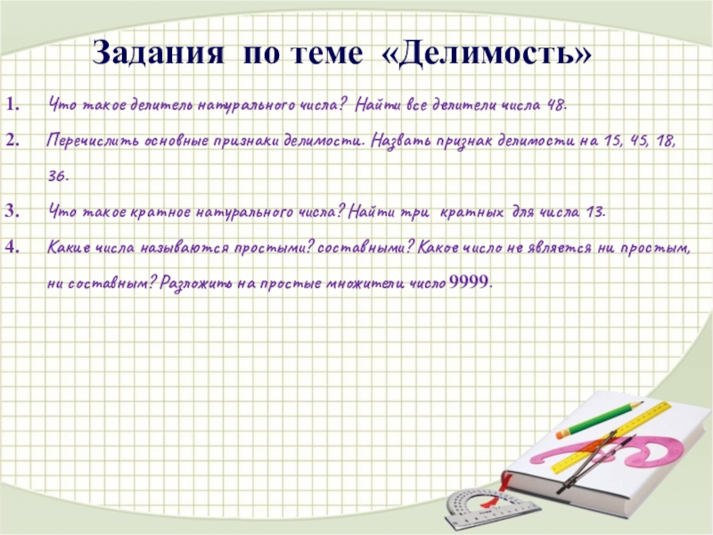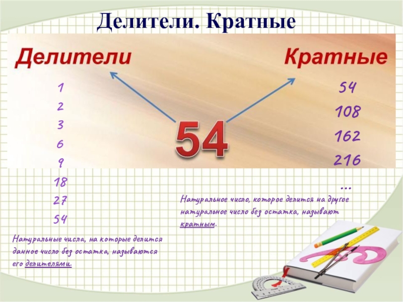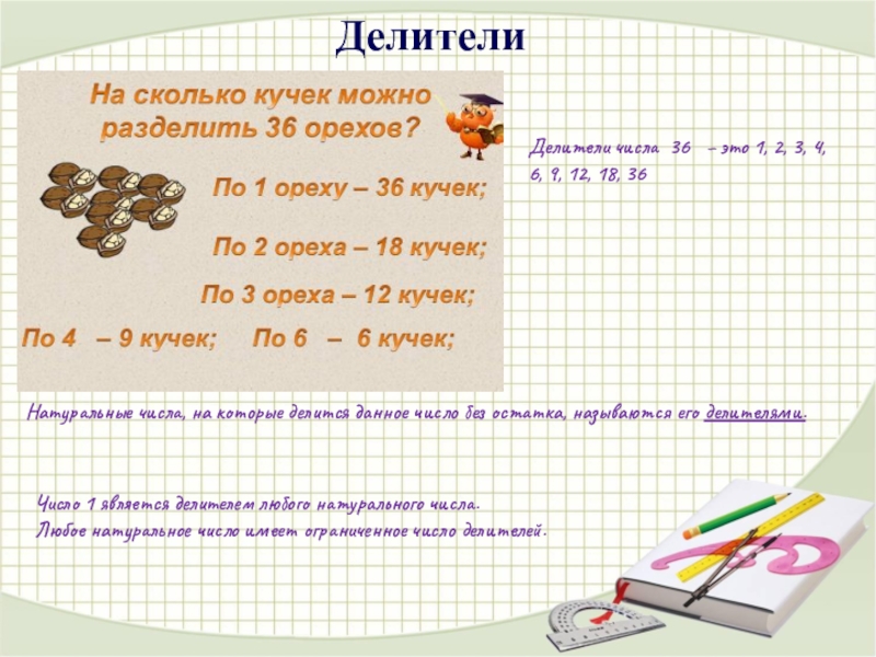 Натуральные числа, на которые делится данное число без остатка, называются его делителями.