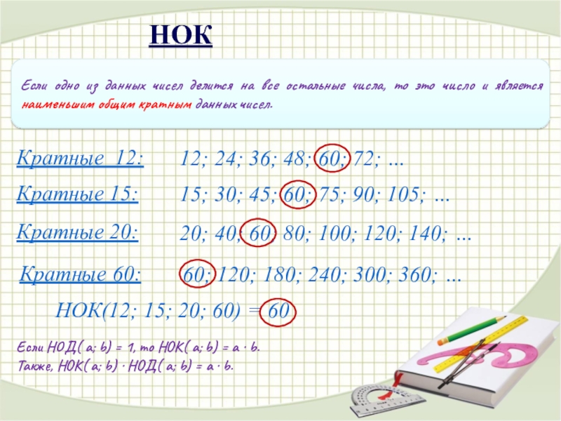 Также, НОК( а; b) · НОД( а; b) = а · b.