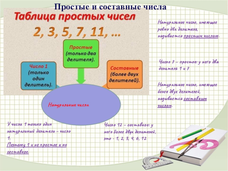 Число 12 – составное: у него более двух делителей, это - 1, 2, 3, 4, 6, 12