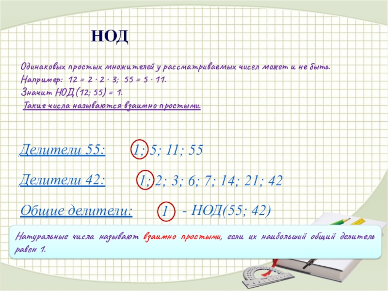 Натуральные числа называют взаимно простыми, если их наибольший общий делитель равен 1.