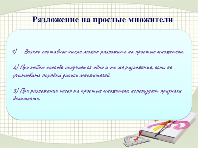 Например: 12 = 2 · 2 · 3; 55 = 5 · 11.
