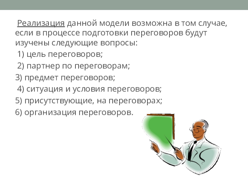 До начала переговоров необходимо иметь разработанную их модель,