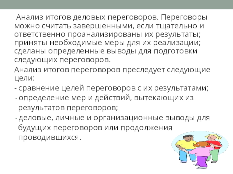 Слайд 12 Анализ итогов деловых переговоров. Переговоры можно считать завершенными, если тщательно и