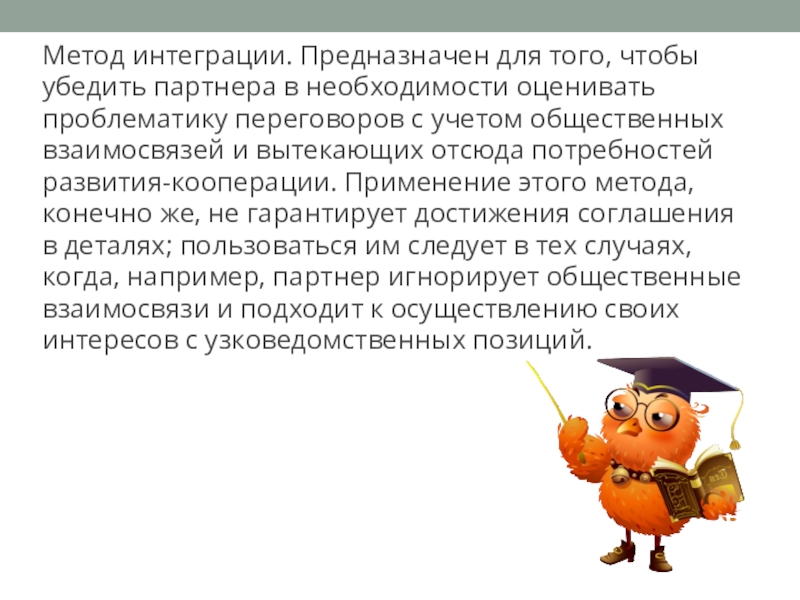 Слайд 8Метод интеграции. Предназначен для того, чтобы убедить партнера в необходимости оценивать