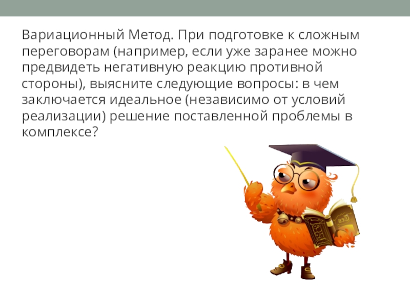Слайд 7Вариационный Метод. При подготовке к сложным переговорам (например, если уже заранее