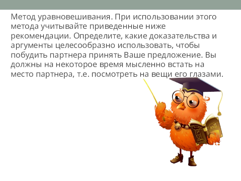 Слайд 9Метод уравновешивания. При использовании этого метода учитывайте приведенные ниже рекомендации. Определите,