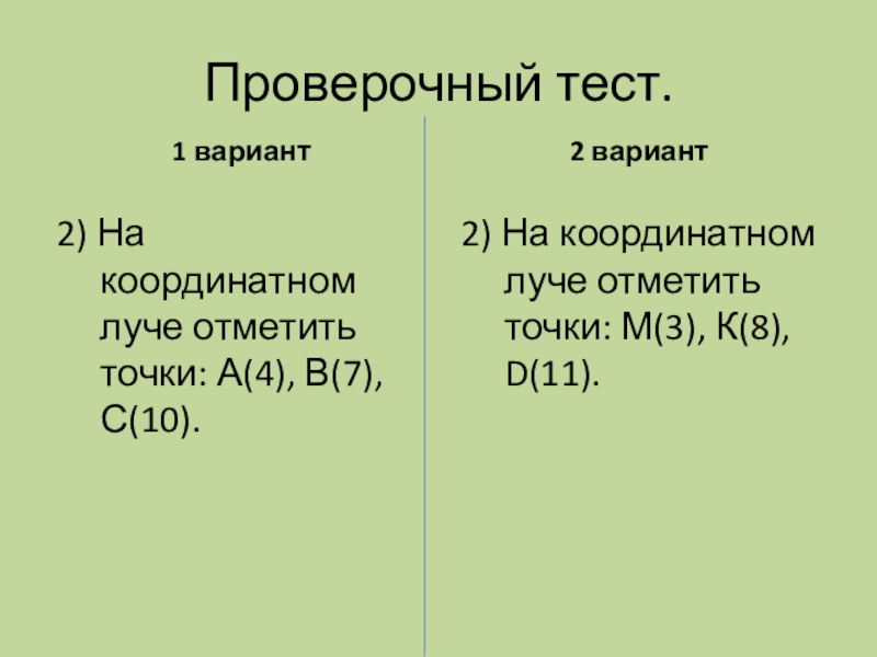 2) На координатном луче отметить точки: А(4), В(7), С(10).