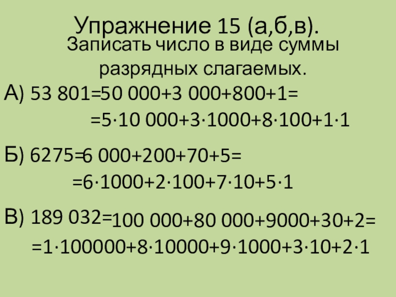 Записать число в виде суммы разрядных слагаемых.