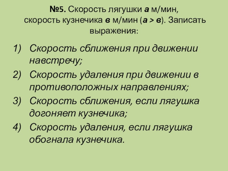 Скорость сближения, если лягушка догоняет кузнечика;