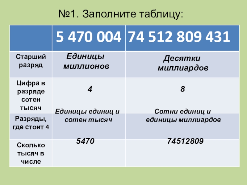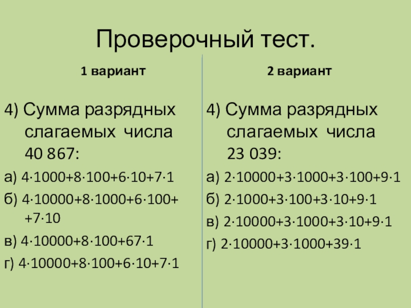 4) Сумма разрядных слагаемых числа 40 867: