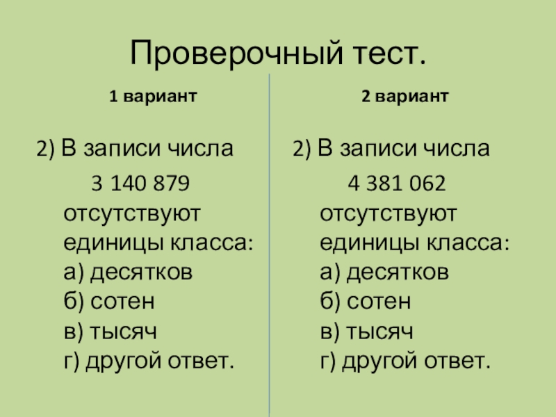 3 140 879 отсутствуют единицы класса: а) десятков б) сотен в) тысяч г) другой ответ.