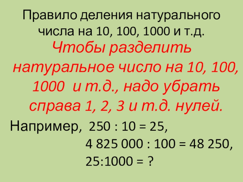 Например, 250 : 10 = 25,