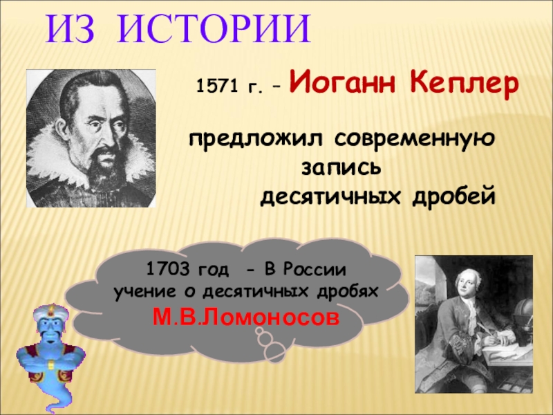 1703 год - В России учение о десятичных дробях М.В.Ломоносов