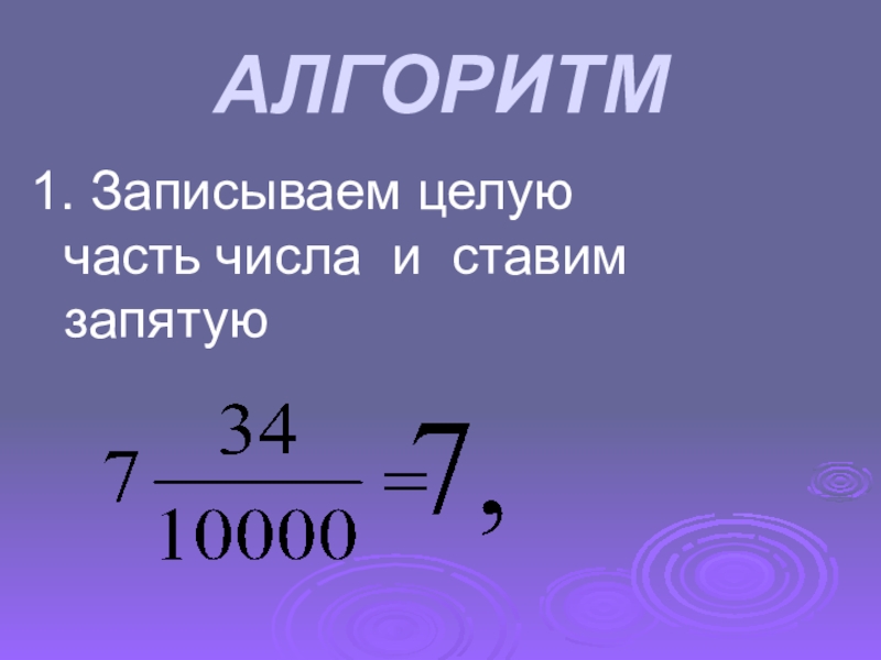 АЛГОРИТМ1. Записываем целую часть числа и ставим запятую