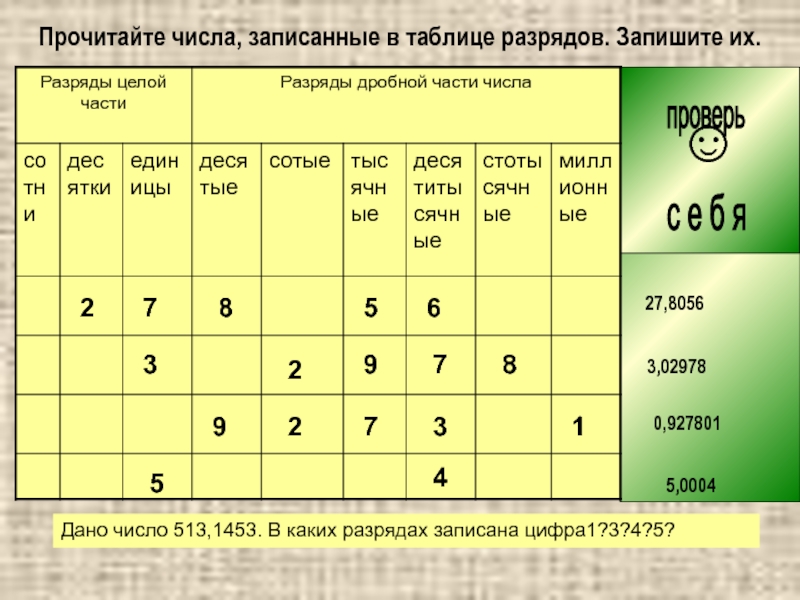 г) В каких разрядах стоит цифра 5; цифра 1?