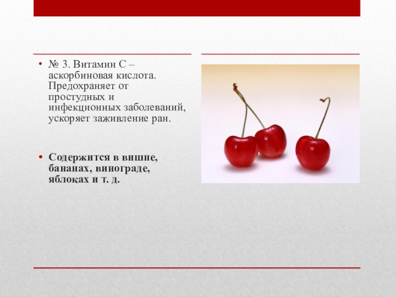 Слайд 19№ 3. Витамин С – аскорбиновая кислота. Предохраняет от простудных и