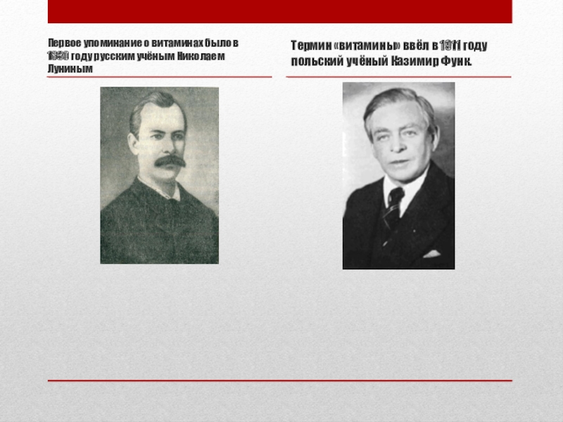 Слайд 14Первое упоминание о витаминах было в 1880 году русским учёным Николаем
