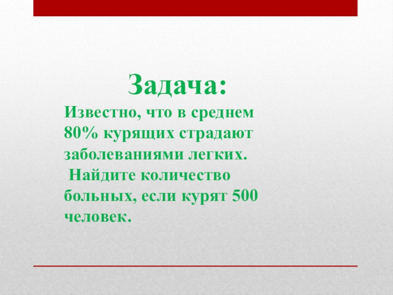 Известно, что в среднем 80% курящих страдают заболеваниями легких.