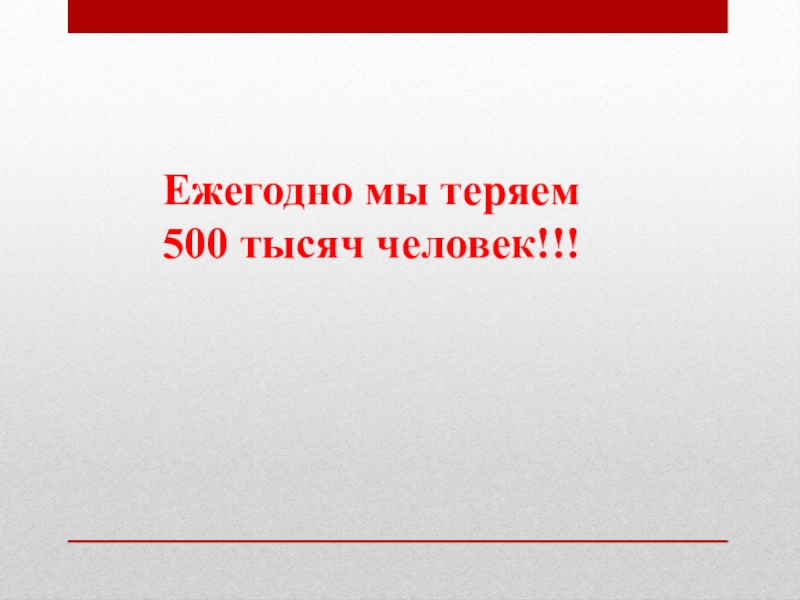 Слайд 12Ежегодно мы теряем 500 тысяч человек!!!