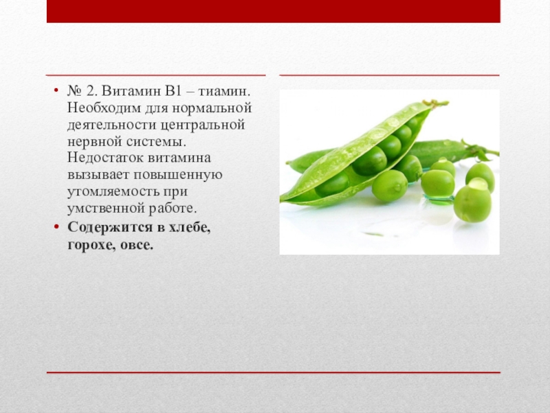 Слайд 18№ 2. Витамин В1 – тиамин. Необходим для нормальной деятельности центральной