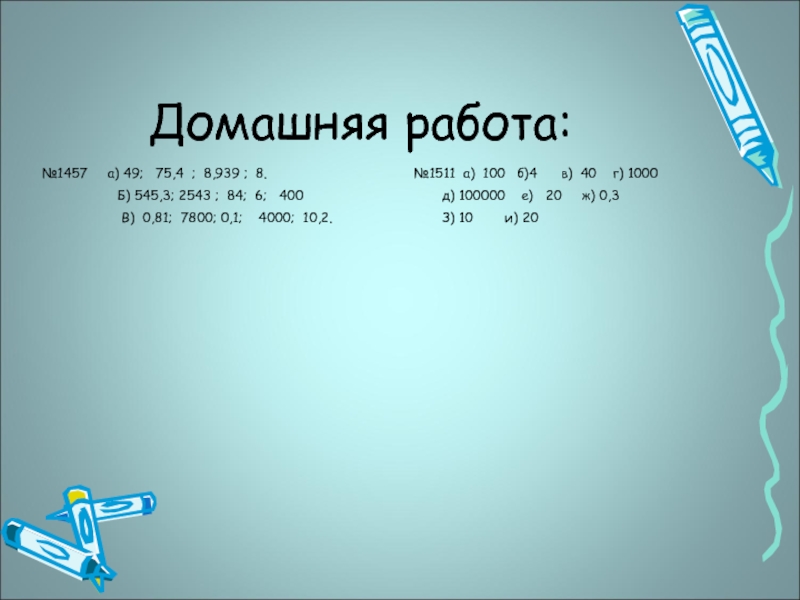 №1457 а) 49; 75,4 ; 8,939 ;