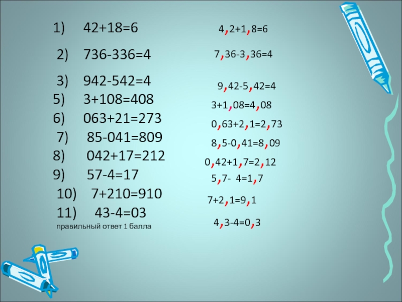 Слайд 61) 42+18=6