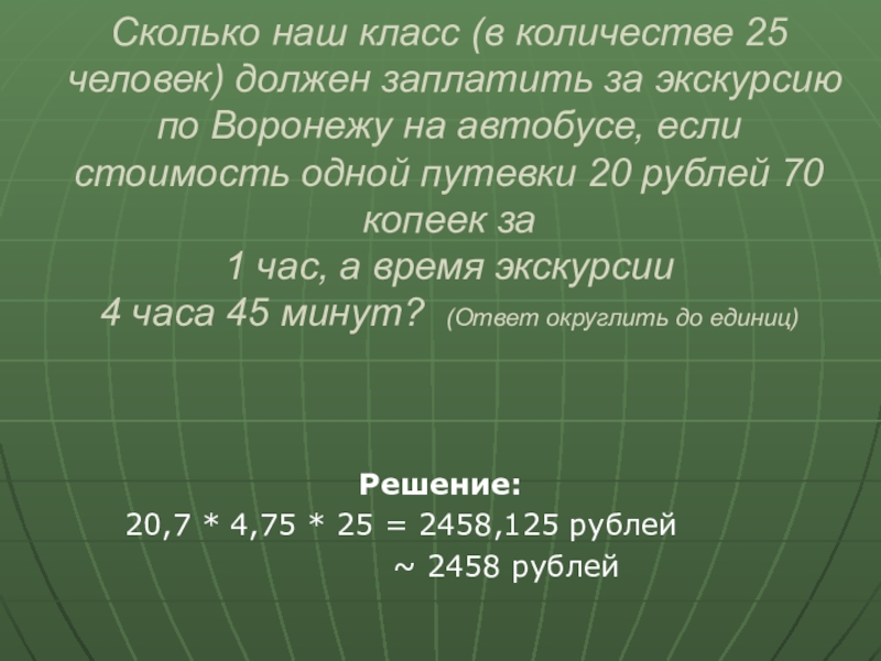 6) 0,8 + 1 = 1,8 (ч) – время всей экскурсии.