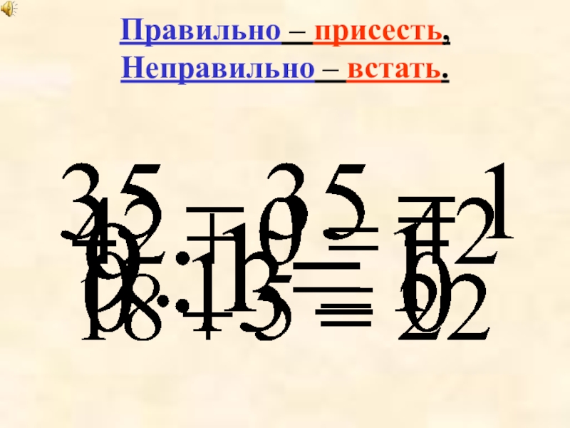 Слайд 5Правильно – присесть, Неправильно – встать.
