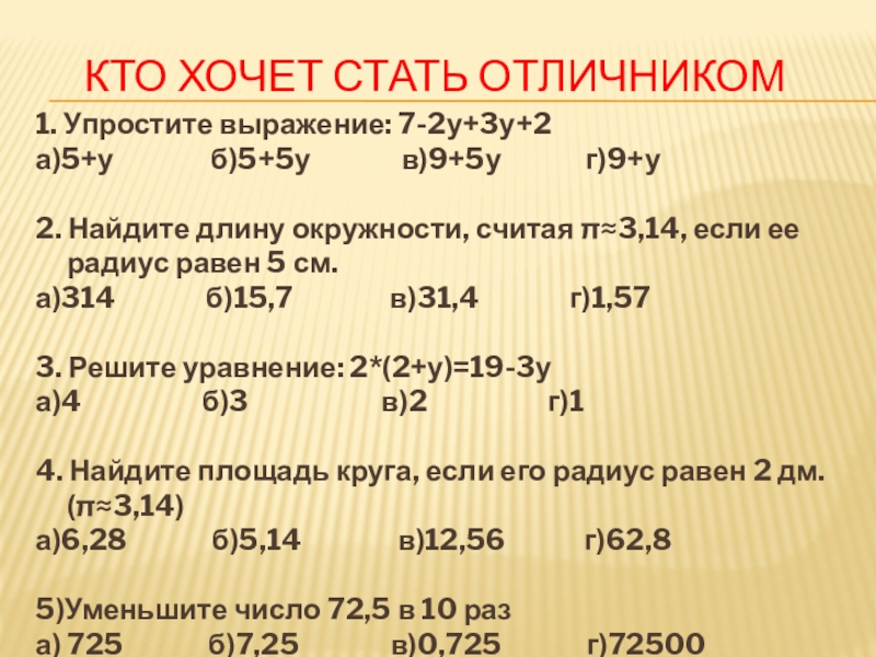 4. Найдите площадь круга, если его радиус равен 2 дм. (π≈3,14)